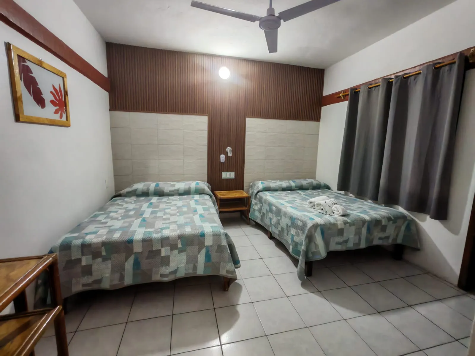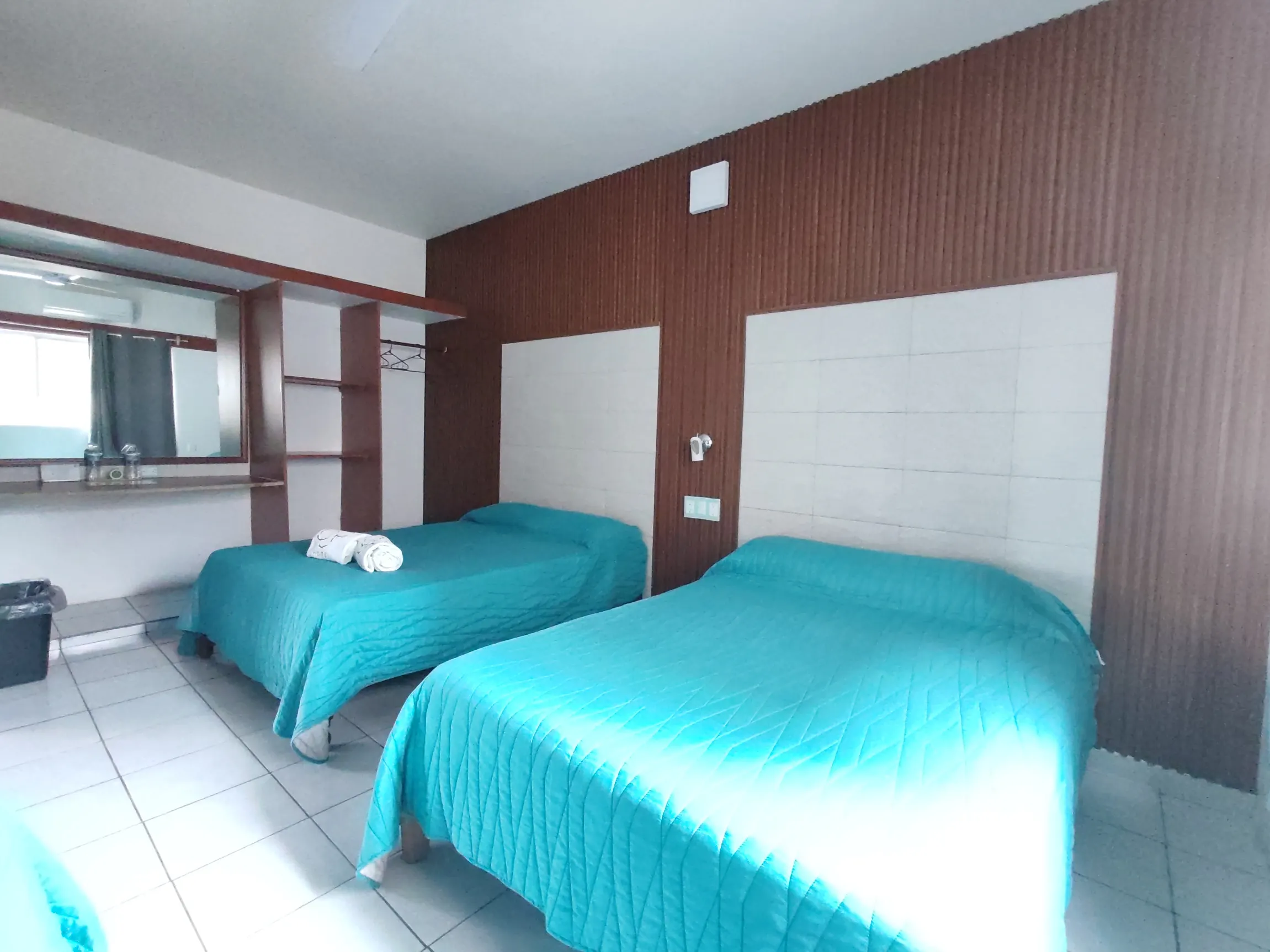 Cómoda y confortable habitación con 2 camas tipo matrimonial para hasta 4 personas, ventilador y aire acondicionado, TV con sistema de megacable.